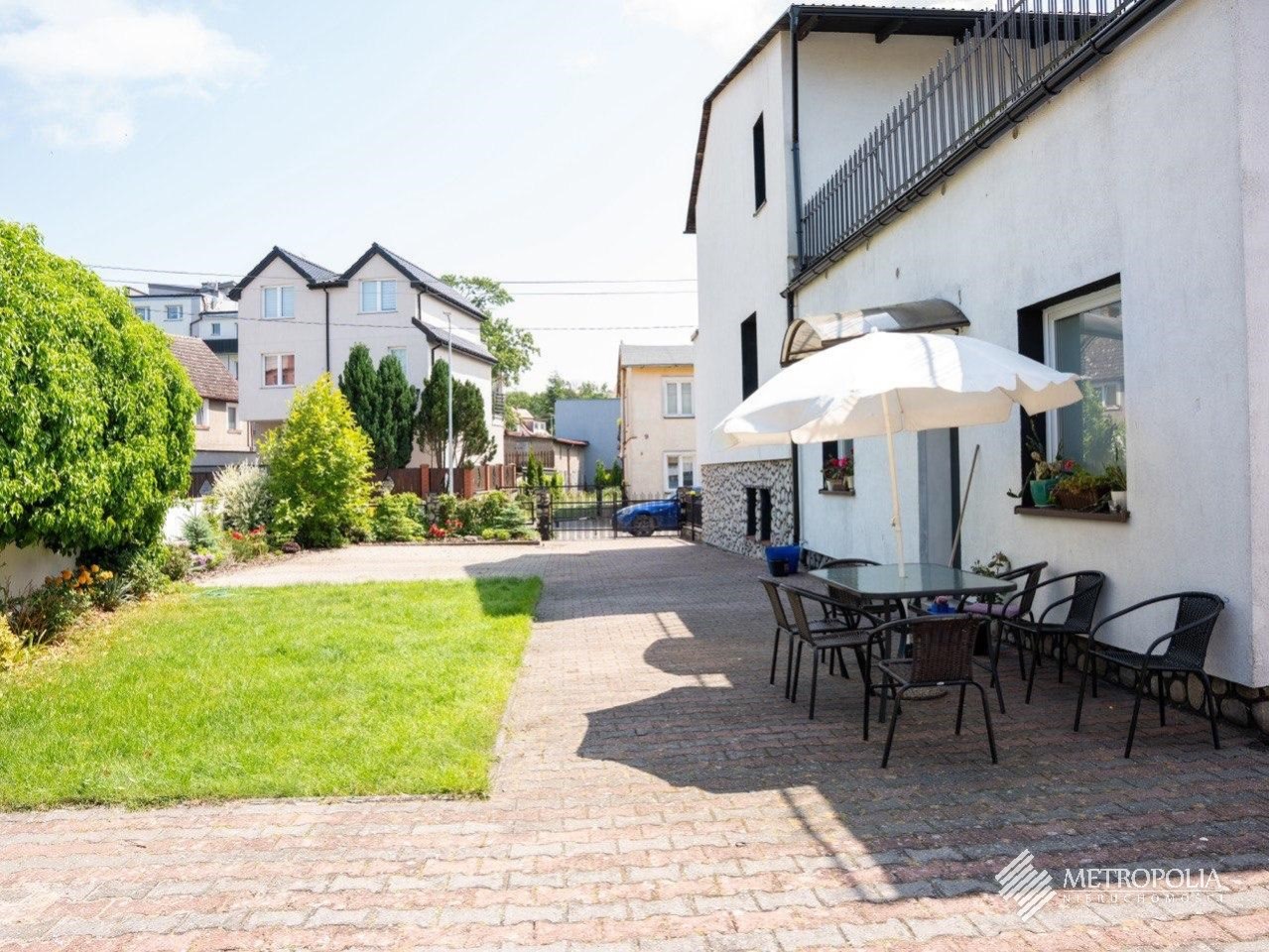 Całość ogrodzona z bramą wjazdową na pilota.