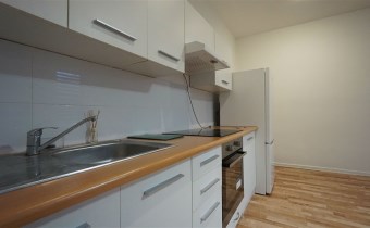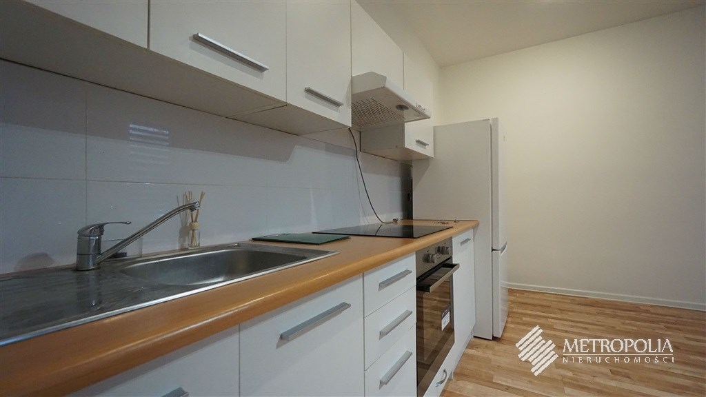 Kuchnia wyposażona w lodówkę, piekarnik, płyte indukcyjną.