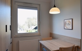 Aneks kuchenny z wydzieloną jadalnią, z oknem.