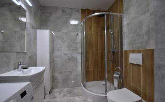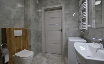 Łazienka z kabina natryskową, umywalka, w.c. w zabudowie,