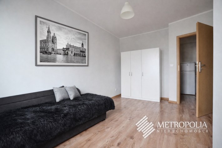 Mieszkanie umeblowane w podstawowym zakresie. W każdym pokoju wersalka, szafa, biurko. Na wyposażeniu lodówka, pralka, kuchenka elektryczna. Zakres dodatkowych mebli do ustalenia z właścicielem.